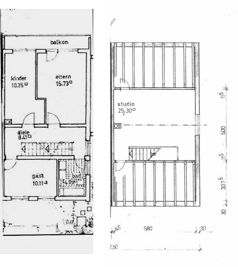 Die Räume im 1. OG sind hell, freundlich und durch den geschickten Grundriss gut zu möblieren. Das ausgebaute Dachstudio ist sehr geräumig (25,3 m²), hat kaum Dachschräge und ist durch das westseitige Fenster sehr freundlich und hell.