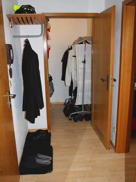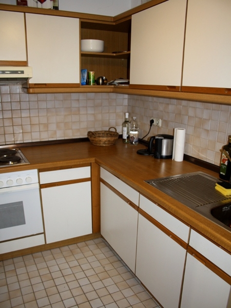 Das Badezimmer (Duschbad) ist deckenhoch gefliest. Die Wohnräume, der Flur und die Abstellkammer wurden 2004 mit einem neuen Laminatboden ausgestattet. Die Böden in Bad und Küche sind gefliest. Die Küche hat eine praktische Einbauküche.