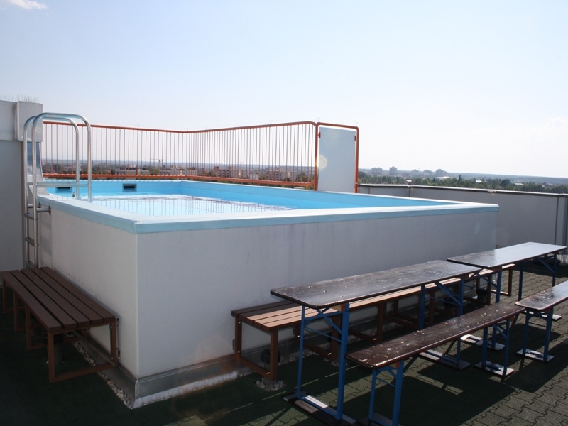 Auf dem Dach des Gebäudes steht Ihnen außerdem ein beheizbarer Pool mit einer großzügigen, windgeschützten Sonnenterrasse zur Verfügung.