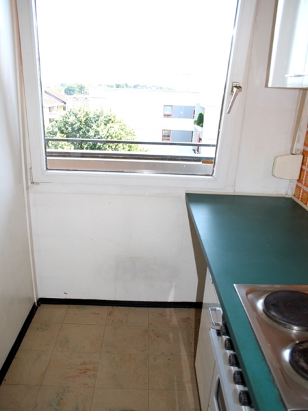 Die komplett eingerichtete, separate Küche (Zugang über eine Schiebetür) hat ein großes Südfenster.