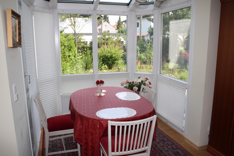 Alle Fenster im Erdgeschoss (außer den Fenstern im Erker) und das Schlafzimmer im Obergeschoss haben elektrische Rolläden. Der Erker wurde mit einer neuen elektrischen Markise versehen. Die Wohnräume wurden mit edlem Parkett ausgestattet; lediglich der Hobbyraum wurde mit Teppichboden ausgelegt. Die Bäder wurden hell und freundlich gefliest. Auch die Küche hat einen Fliesenboden.