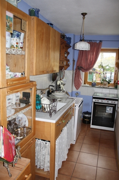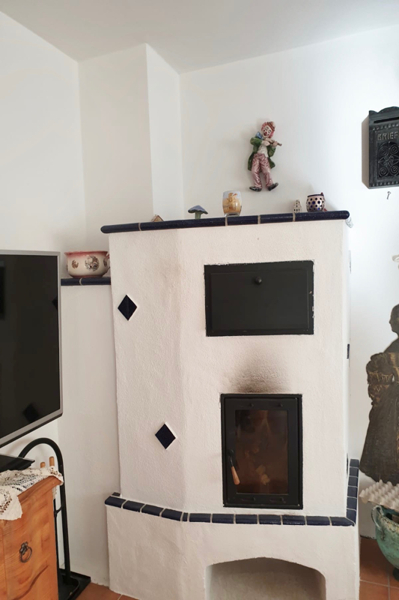 Die Gestaltung des Wohn-/ Essbereichs (fast 34 m²!) ist hervorragend gelungen. Der schöne Kachelofen trägt im Winter zu einer heimeligen Atmosphäre bei. Der Boden im Wohn-/ Essbereich sowie im Küchenbereich (über 8 m²) wurde mit attraktiven Terracotta-Fliesen versehen. Der kleine, eingewachsene Garten mit seiner großzügigen Süd-Terrasse (über 21 m²) ist direkt vom Wohnzimmer aus zugänglich.