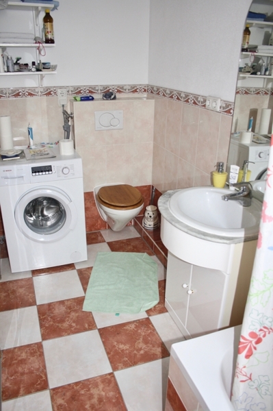Das gepflegte, modern geflieste Badezimmer (mit Fenster) wurde mit einer Badewanne ausgestattet und hat einen Waschmaschinenanschluss.