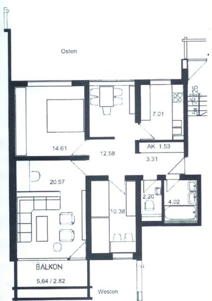 Die helle 3,5-Zimmer-Wohnung befindet sich im 4. (und zugleich obersten) Obergeschoss einer gepflegten Wohnanlage. Ein Lift ist vorhanden.