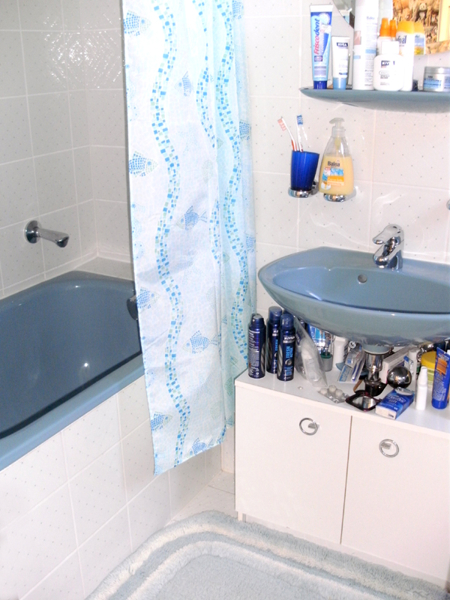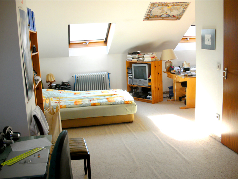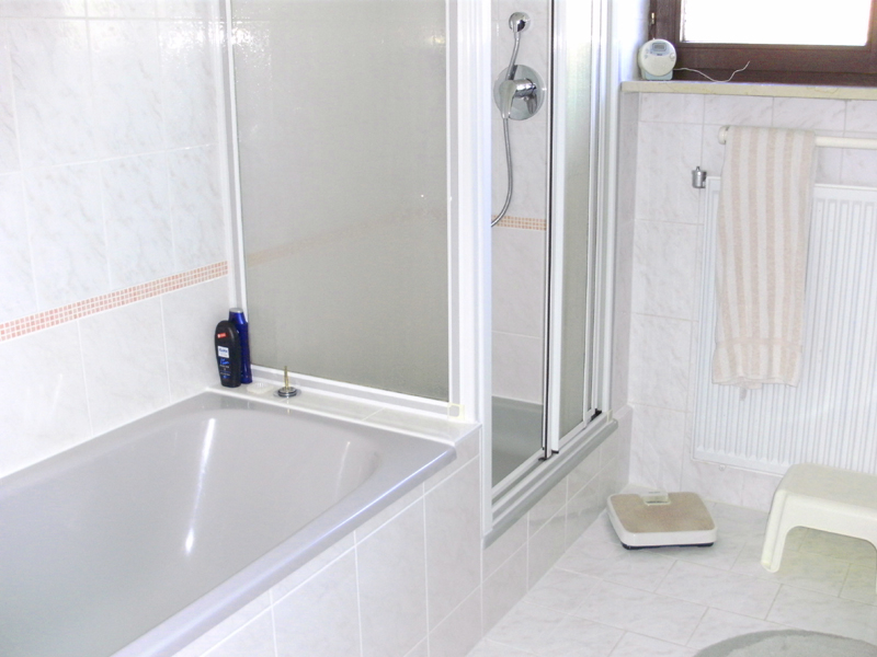 Das Bad im Dachgeschoss (mit Dachfenster) wurde mit einer Sitzbadewanne, einer Toilette und einem Waschbecken versehen, so dass das Studio bequem als eigener Wohnbereich (z.B. für Heranwachsende) genutzt werden kann.