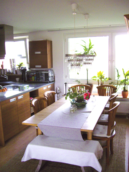 Die Küche wurde im Jahr 2006 mit einer absolut hochwertigen Marken-Einbauküche (Alno) mit pflegeleichtem Kirsche-Echtholz-Dekor und Marken-Einbaugeräten (Kühl-Gefrierkombination, Herd, separater Backofen, Mikrowelle, Spülmaschine) ausgestattet. Der freistehende Herd mit großer schwebender Abzugshaube als Abtrennung zum Essbereich ist ein absolutes Highlight. Hier macht Kochen einfach Spaß.