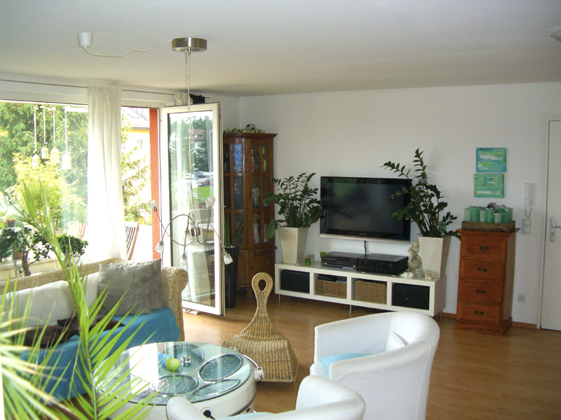 Die Wohnung liegt im 2. Stock einer kleinen, sehr gepflegten und Wohnanlage. Die sonnige Loggia ist nach Süden ausgerichtet. Von hier aus haben Sie eine herrliche Aussicht ins Grüne.