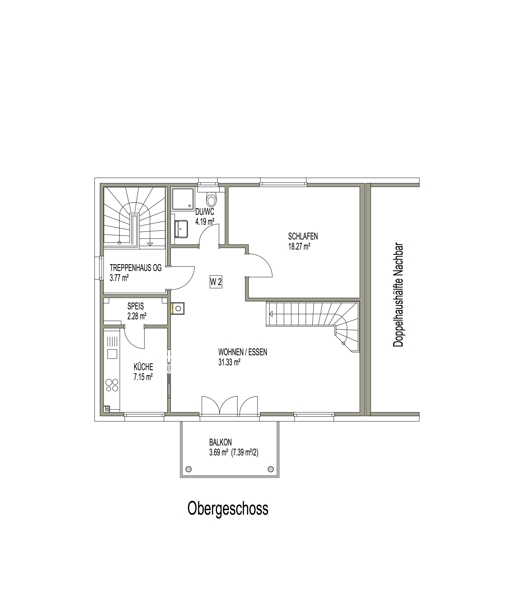 Das Highlight im OG ist das großzügige, lichtdurchflutete Wohn-/Esszimmer mit über 31 m². Von hier aus haben Sie Zugang zu einem der beiden Südwest-Balkone mit schönem Blick ins Grüne. Im Wohn-/ Esszimmer ist der Anschluss eines Kaminofens möglich.