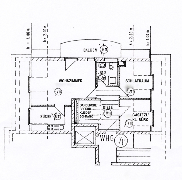Die gut geschnittene Dachgeschoss-Wohnung besticht durch ihre hochwertige Ausstattung. Die Fenster haben Rolläden. Das helle, geräumige Wohnzimmer (fast 19 m², Grundfläche fast 25 m²) wurde mit edlem Parkett ausgelegt. Der große Balkon ist über das Wohnzimmer zugänglich. Die Wohnung hat außerdem noch einen kleinen Schlafraum (fast 7 m², Grundfläche über 8 m²) sowie ein Gästezimmer/ kleines Büro (über 6 m², Grundfläche über 7 m²)
