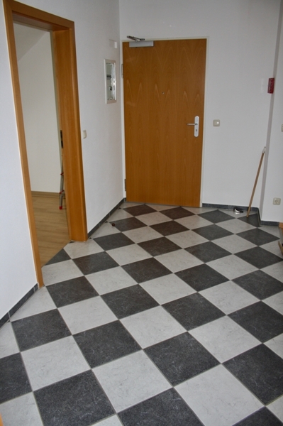 Das Parkett im Wohnzimmer wurde frisch abgeschliffen. Alle anderen Böden in der Wohnung wurden erneuert (hochwertiges Laminat bzw. moderne Fliesen).