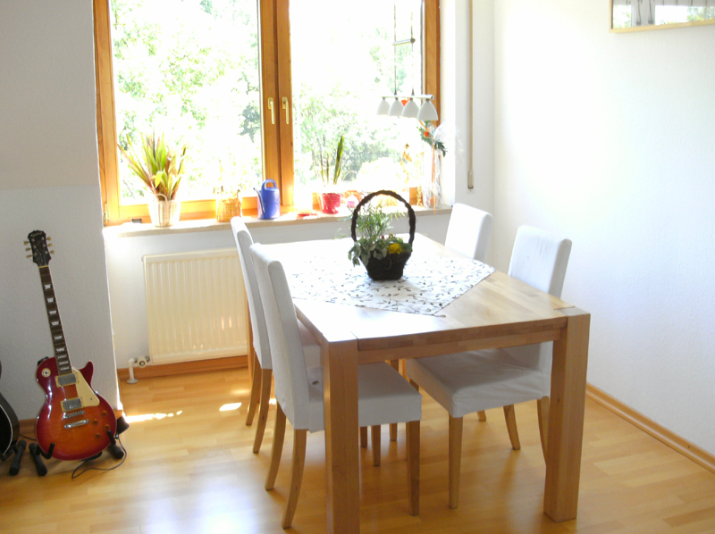 Die Wohnräume und der Flur wurden im Jahr 2007 mit einem neuen Laminatboden ausgestattet. Das geräumige Badezimmer (mit Fenster) hat sowohl eine Badewanne als auch eine Dusche und wurde hell und freundlich gefliest. Ein Waschmaschinenanschluss ist im Bad vorhanden. Zusätzlich gibt es noch ein hübsches Gäste-WC. Die zum Essplatz hin offene Küche wurde mit einer modernen Einbauküche ausgestattet.