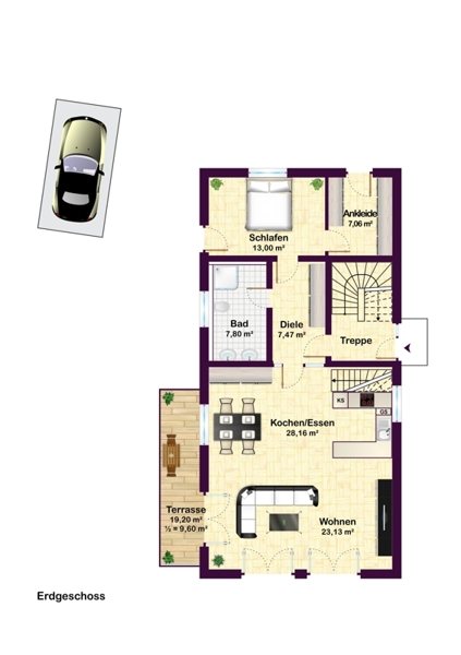 Geräumige Gartenwhg. m. 158 m² WNfl. in EG u. UG