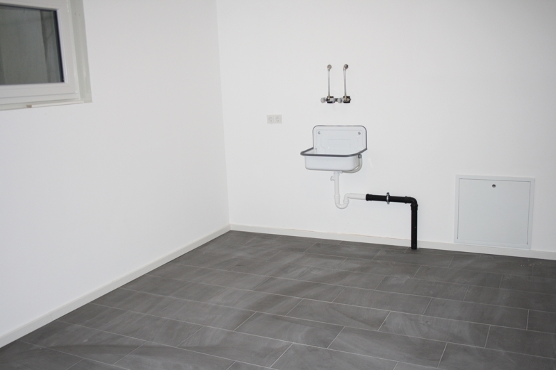 Hier befinden sich ein großer Hobbyraum (über 50 m², nicht auf die Wohnfläche angerechnet!) mit Anschluss für Waschmaschine und Trockner.