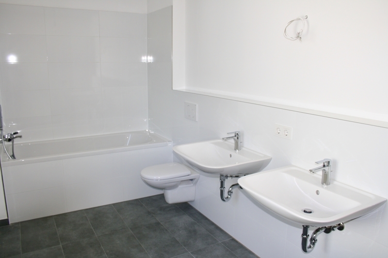 Die Innenraumfotos in diesem Exposé zeigen die benachbarte Doppelhaushälfte (Räume spiegelbildlich), da zuerst die andere DHH komplett fertiggestellt wurde. Die beiden Doppelhaushälften unterscheiden sich lediglich in der Anordnung und Größe der Terrasse sowie in der Grundstücksgröße und sind ansonsten gleich ausgestattet.