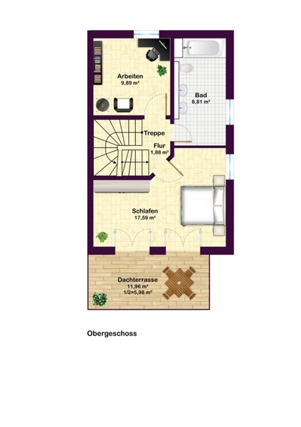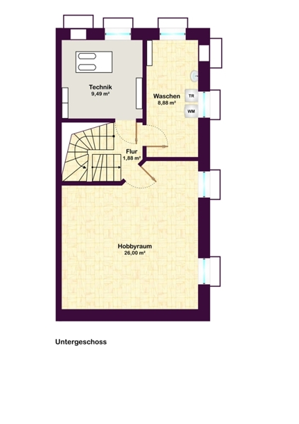 Das großzügige Raumangebot wird noch ergänzt durch das Studio (22 m²) im Dachgeschoss und den Hobbyraum/ Keller (26 m², mit Fußbodenheizung!) sowie die Waschküche mit Anschluss für Waschmaschine und Trockner im Untergeschoss.