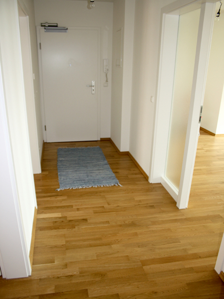 Die ansprechende, helle Wohnung wurde sehr hochwertig ausgestattet. Das großzügige Wohn-/Esszimmer (über 23 m²) wurde ebenso wie das hübsche Schlafzimmer, das praktische Arbeitszimmer und die einladende Diele mit einem edlen Parkettboden (Eiche massiv) ausgestattet. Das Wohnzimmer mit seiner Loggia und die Küche sind ideal nach Süden ausgerichtet.