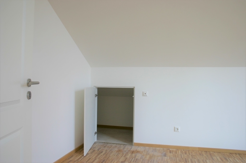 Ein absolutes Highlight ist das Wohnzimmer mit der großen Dachgaube, die komplett bodentief verglast ist. Zwei große Doppeltüren öffnen zum über 10 m² großen, überdachten, herrlichen Südbalkon. Diese Dachgeschoss-Wohnung hat eine sehr attraktive Raumgestaltung mit Raumhöhen von bis zu gut 3 Metern und sichtbaren Dachbalken. Die Fenster-Türen in Schlaf- sowie Kinder- bzw. Arbeitszimmer öffnen jeweils mit Doppelflügel zum zweiten Balkon dieser wunderschönen Wohnung. Zudem sind auch bei diesen Zimmern die großen Fenster nach oben hin der Dachneigung angepasst, was für eine tolle Raumwirkung und einen herrlichen Lichteinfall sorgt. Sehr praktisch ist der Abstellraum (mit Schiebetüre!) sowie die beiden Kriechspeicher, die viel zusätzlichen Stauraum bieten.