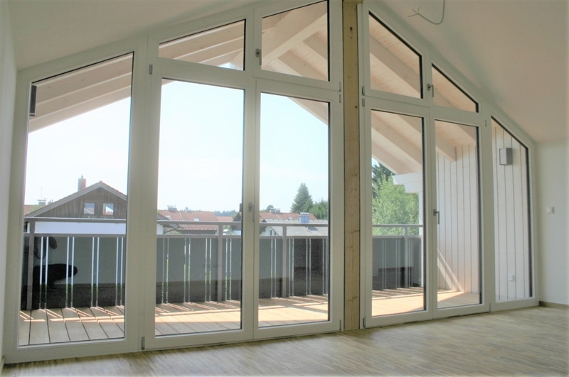 Die Wohnung ist mit sehr hochwertigen Holz-Alu-Fenstern und edlen, weißen Holztüren mit Edelstahlgarnituren ausgestattet. Die beiden Dachflächenfenster in Küche und Bad sind elektrisch bedienbar und haben ebenfalls elektr. Außenrollos. Ein Glaseinsatz in der Wohnzimmertüre sorgt für natürliches Licht in der Diele.