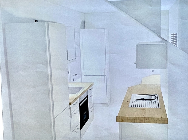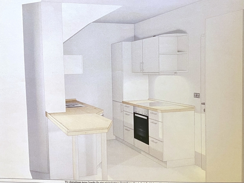 Ein weiteres Highlight ist die separate Küche: Eine neue, moderne Einbauküche wurde schon bestellt. Die Küche lässt keine Wünsche offen: Sie hat eine Geschirrspülmaschine, ein Cerankochfeld mit Dunstabzug, einen Backofen und eine Kühl-/ Gefrierkombination.